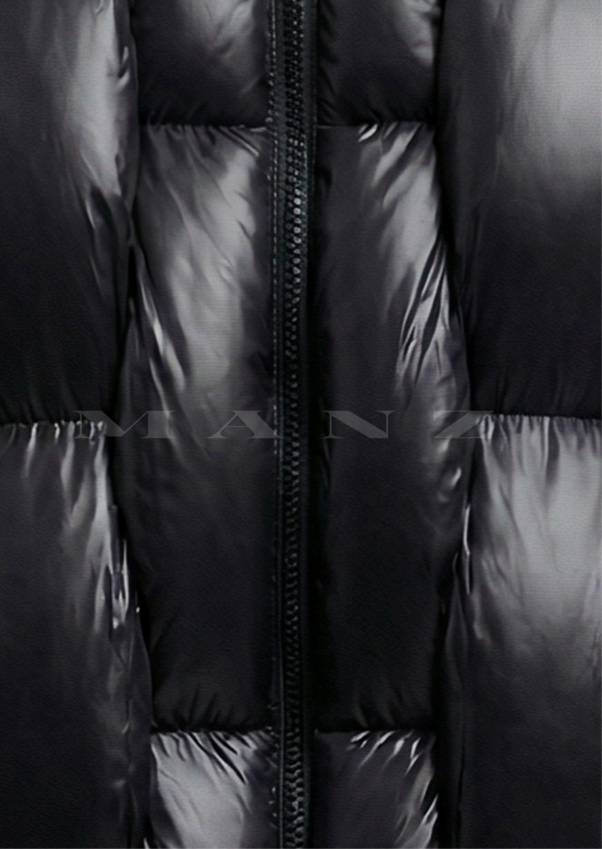 Hooded puffer jacket in high-gloss lacquered nylon with premium goose down fill